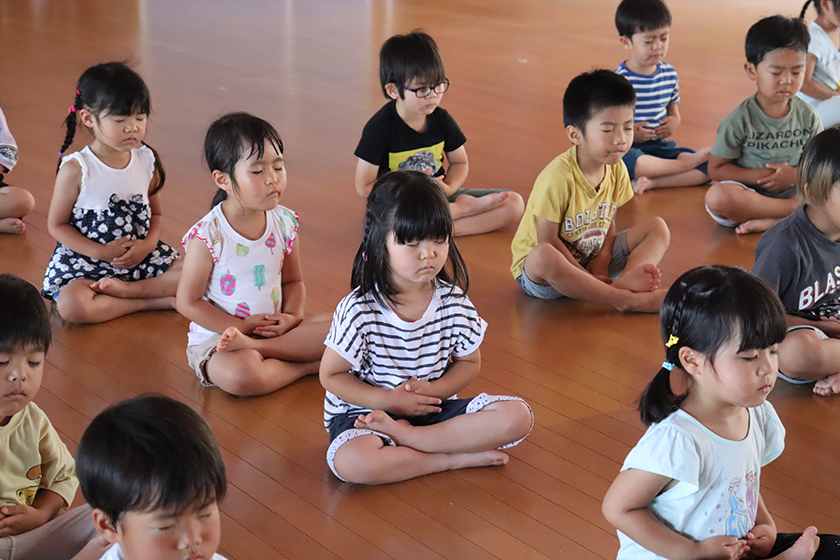 昭和41年に臨済宗眞福寺を発症として、仏教保育園を設立。全ての保育室にはお釈迦様の仏壇を設置し園児のよりどころとして崇拝しています。また。体育館には聖観世音菩薩像を安置し子どもたちの無事に成長と活躍を見守っています。教育目標は「ただしく・つよく・なかよく」で善悪のけじめ、己に負けない強い意思、友だちを思う優しい思いやりが幼児期に育ってほしいと願います。仏様の教えをまもり、動物、植物、草花など命があるもの全てを大切に思うことができる人間づくり目指しています。