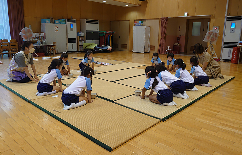 年少児からきちんと座ることを覚え、人の話に耳を傾ける習慣を身につける環境づくりを心掛けています。